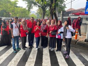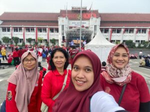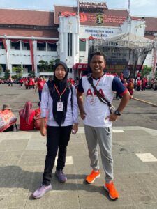 Kegiatan jalan sehat di balaikota surabaya dalam rangka memperingati hari guru
